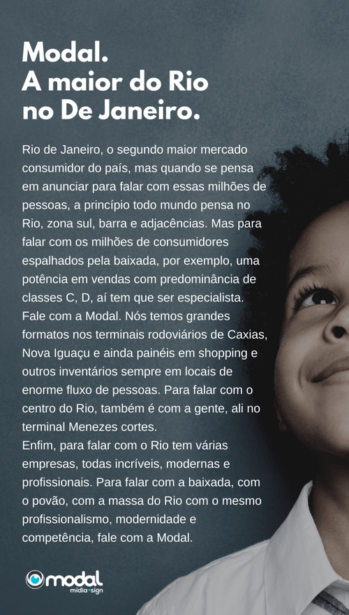 After all, in the lowlands and northern zone of Rio, it only gives modal. The OOH company Modal Media + Sign has a new campaign in the media and social networks, starting to present itself as the specialist in “De Janeiro”.